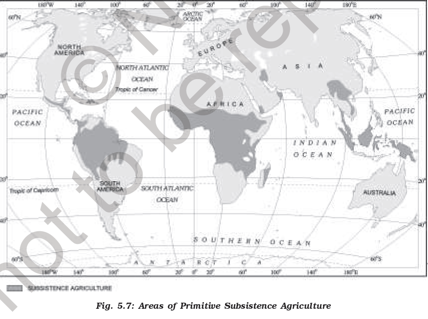 Subsistence agriculture is one in which the farming areas consume all, or nearly so, of the products locally grown. It can be grouped in two categories — Primitive Subsistence Agriculture and Intensive Subsistence Agriculture