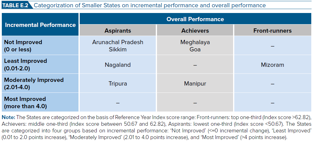 Among the Smaller States, Mizoram ranked first in overall performance; while Tripura and Manipur were top two States in terms of incremental performance