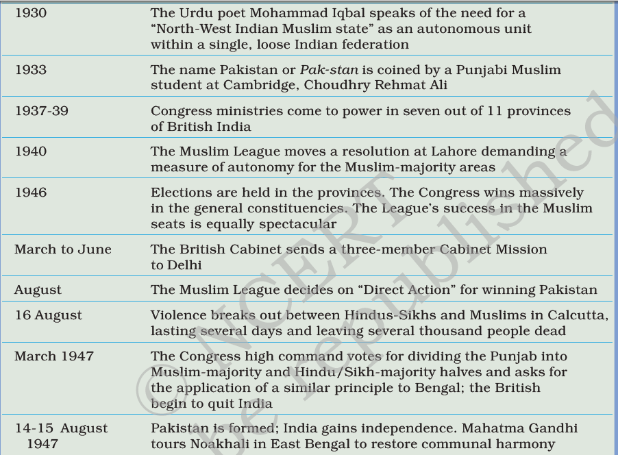 Important Terminologies- Taluqdar literally means “one who holds a taluq” or a connection. Taluq came to refer to a territorial unit. Benami, literally anonymous, is a term used in Hindi and several other Indian languages for transactions made in the name of a fictitious or relatively insignificant person, whereas the real beneficiary remains unnamed. Bell of arms is a storeroom in which weapons are kept. Firangi, a term of Persian origin, possibly derived from Frank (from which France gets its name), is used in Urdu and Hindi, often in a derogatory sense, to designate foreigners. Mutiny – a collective disobedience of rules and regulations within the armed forces Revolt – a rebellion of people against established authority and power. The terms ‘revolt’ and ‘rebellion’ can be used synonymously. In the context of the revolt of 1857 the term revolt refers primarily to the uprising of the civilian population (peasants, zamindars, rajas, jagirdars) while the mutiny was of the sepoys. Qasbah is a small town in the countryside, often the seat of a local notable. Ganj refers to a small fixed market. Both qasbah and Ganj dealt in cloth, fruit, vegetables and milk products. They provided for noble families and the army. Pet is a Tamil word meaning settlement, while puram is used for a village Confederation – in modern political language it refers to a union of fairly autonomous and sovereign states with a central government with delimited Powers The name “Pakistan” The name Pakistan or Pak-stan (from Punjab, Afghan, Kashmir, Sind and Baluchistan) was coined by a Punjabi Muslim student at Cambridge, Choudhry Rehmat Ali, who, in pamphlets written in 1933 and 1935, desired a separate national status for this new entity. No one took Rehmat Ali seriously in the 1930s, least of all the League and other Muslim leaders who dismissed his idea merely as a student’s dream. Unionist Party- A political party representing the interests of landholders – Hindu, Muslim and Sikh – in the Punjab The party was particularly powerful during the period 1923-47. Secede means to withdraw formally from an association or organisation.