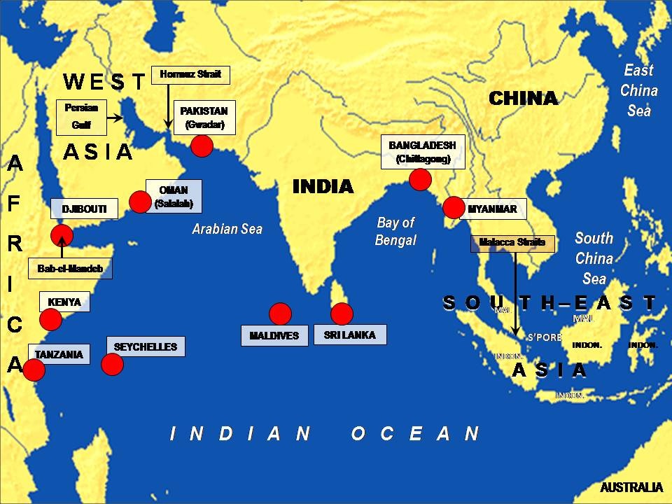 What is “String of Pearls” - Ever since the term "String of Pearls" was coined by a team of experts at US based consultancy Booz Allen in 2004, journalists and academics have overplayed China's supposedly malevolent involvement with countries along its Sea Lines of Communication (SLOC), which stretch from the South China Sea to the Indian Ocean. China had a hidden strategy to build military bases along its SLOC with huge military budget support. According to the 2005 Washington Post article the "String of Pearls" refers to China's supposed aim to leverage diplomatic and commercial ties to build strategic bases stretching from the Middle East to southern China in order to protect its energy interests as well as "broader security objectives".