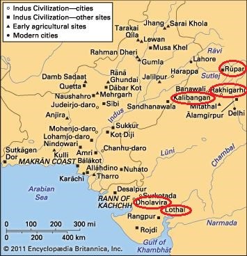 Chandudaro- Sindh Dholavira- Gujarat Kalibagan- Rajasthan Lothal- Gujarat