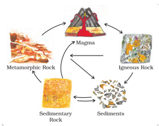 Igneous and metamorphic rocks can change into sedimentary rocks.