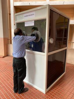 Context: Recently, the scientists at Sree Chitra Tirunal Institute for Medical Sciences and Technology (SCTIMST) have designed and developed a disinfected barrier-examination booth for examining COVID-19 patients.