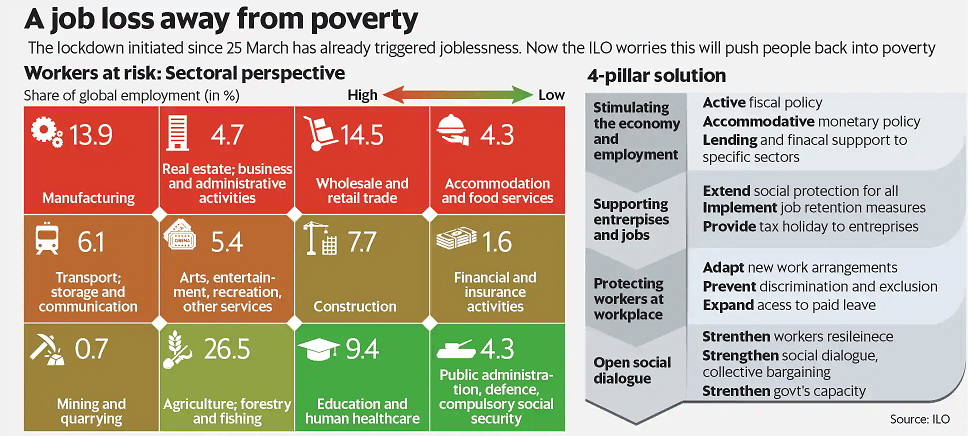 Context: Recently, United Nations' International Labour Organization (ILO) reported that the Indian economy is to face catastrophic consequences in the second quarter of 2020 in the wake of the COVID-19 outbreak. Key Points of the Report