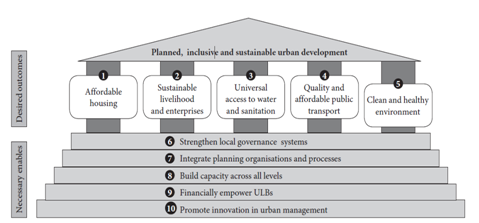 Local capacity building: A real step-up in the capabilities and expertise of urban local bodies will be critical to devolution and improvement of service delivery. Reforms will have to address the development of professional managers for urban management functions, who are in short supply and will be required in large numbers. New innovative approaches will have to be explored to tap into the expertise available in the private and social sectors.