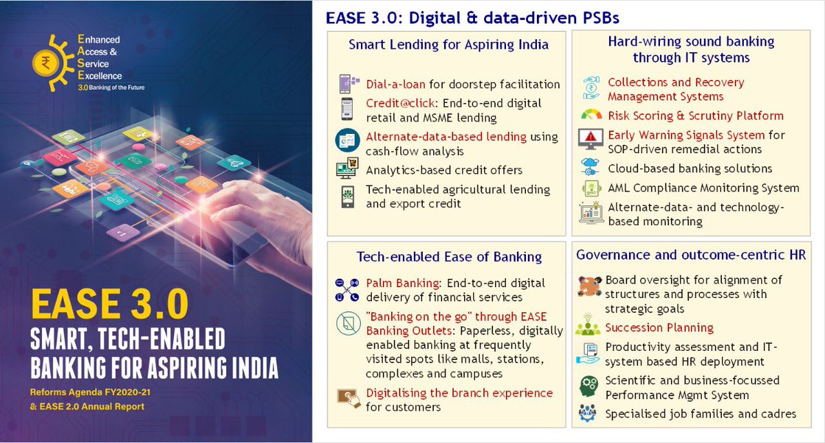 Context: Recently, the EASE (Enhanced Access and Service Excellence) 2.0 Banking Reforms Index on performance of Public Sector Banks (PSB) from March 2018-2020 was released and best performing banks on EASE were felicitated.