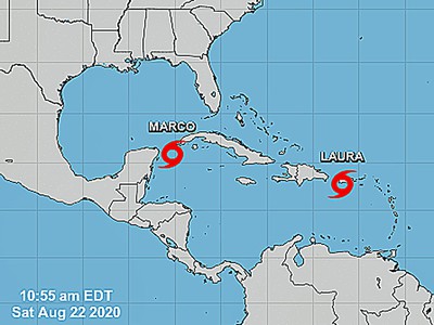 Context: Recently, two tropical storms (Marco & Laura) formed in western Atlantic Ocean at nearly same time, are likely to impact the Gulf of Mexico, North America.