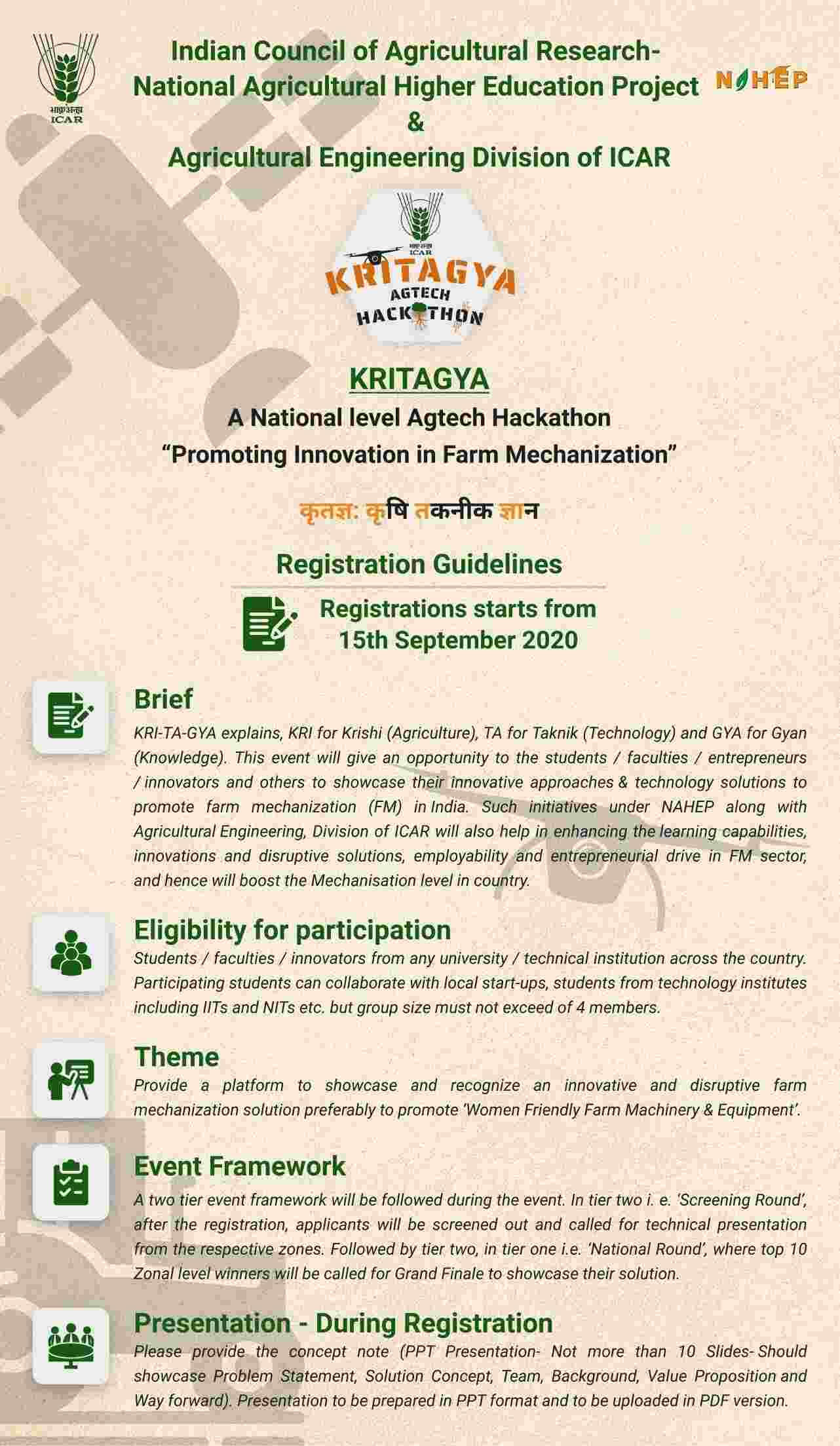 Context: Recently, a hackathon named “KRITAGYA” has been planned by the Indian Council of Agricultural Research (ICAR) under National Agricultural Higher Education Project (NAHEP).