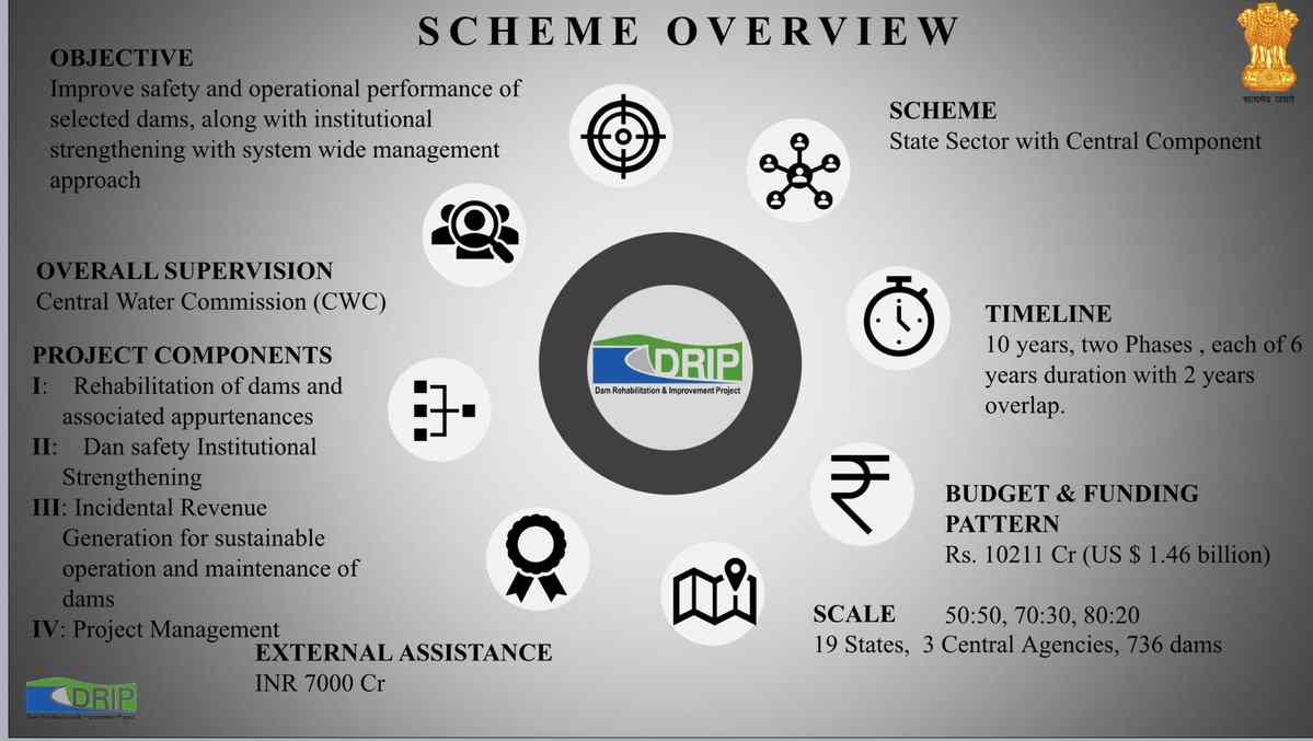 Context: The Cabinet Committee on Economic Affairs has approved the Dam Rehabilitation and Improvement Project (DRIP) Phase II & Phase III with the financial assistance of the World Bank (WB), and Asian Infrastructure Investment Bank (AIIB) to improve the safety and operational performance of selected dams across the whole country, along with institutional strengthening with system wide management approach. Background