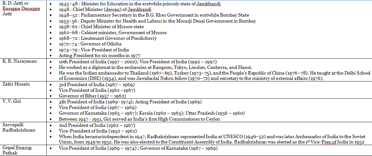 Among the four pairs given below which one consists of a correct combination of dignitaries who became Vice-Presidents after having held diplomatic posts like Ambassadors and High Commissioners ?