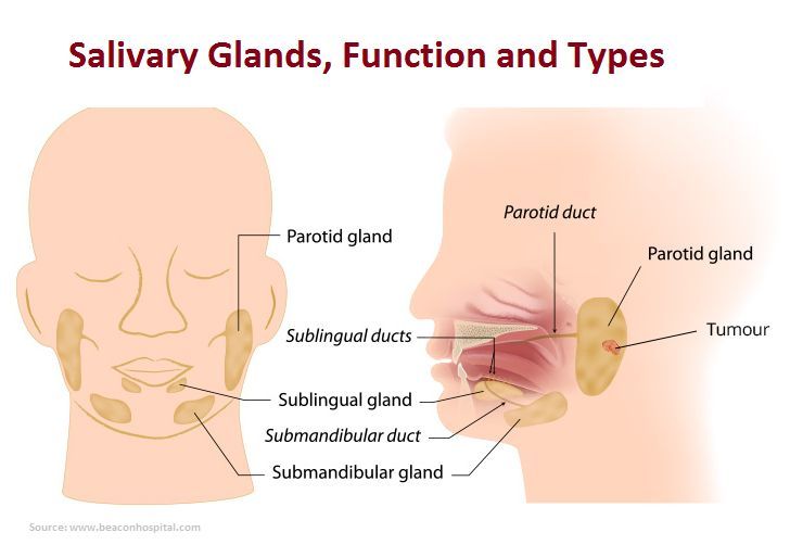 Salivary gland System The salivary gland system in the human body has three paired major glands and over 1,000 minor glands that are spread throughout the mucosa. These glands produce saliva necessary for swallowing, digestion, tasting, mastication and dental hygiene.