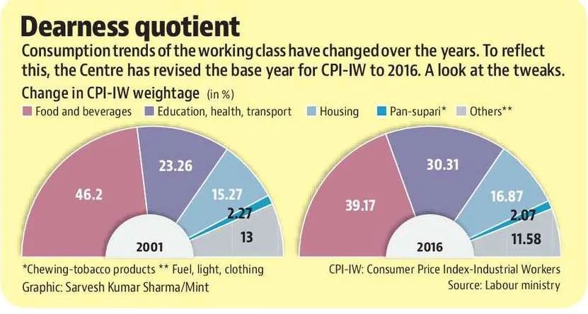 Context: Recently, the Labour and Employment Ministry has revised the base year of the Consumer Price Index (CPI) for Industrial Workers (CPI-IW) from 2001 to 2016.