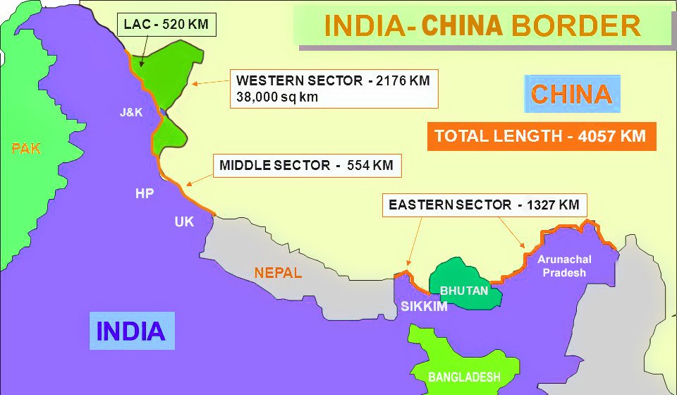 In the eastern sector, the LAC is along the McMahon Line.