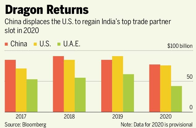Context: Recently, China has regained its position as India’s top trade partner in 2020. Reasons for China being a top trading partner of India