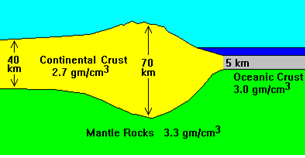 3. The continental crust is made up of heavy basaltic rocks and the oceanic crust is made of lighter granite rocks.