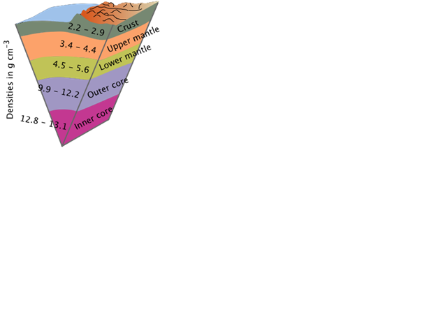The inner core is the innermost part of earth and due to high temperatures (more than 60000 Celsius) it ought to be in a liquid state. But researches have shown that it is in a solid state due to extreme pressure of the overlying layers. Inner core also happens to be the densest layer. Infact the density of earth decreases as one moves away from the centre towards the surface.