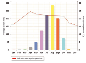 Multiple Choice Questions on To which city does the given temperature rainfall graph corresponds to ........ for UPSC Civil Services Examination (General Studies) Preparation
