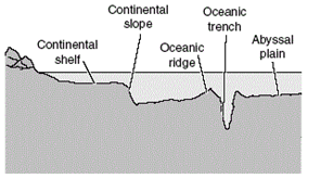 While approaching the oceanic relief from land, which relief feature will you encounter last?