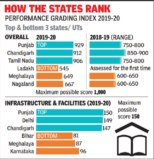 Context: Recently, Union Education Minister released the Performance Grading Index 2019-20 for States and UTs.