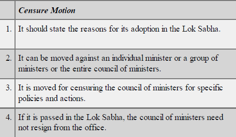 Multiple Choice Questions on Consider the following statements regarding Censure Motion and No Confidence Motion 1 ........... for UPSC Civil Services Examination (General Studies) Preparation