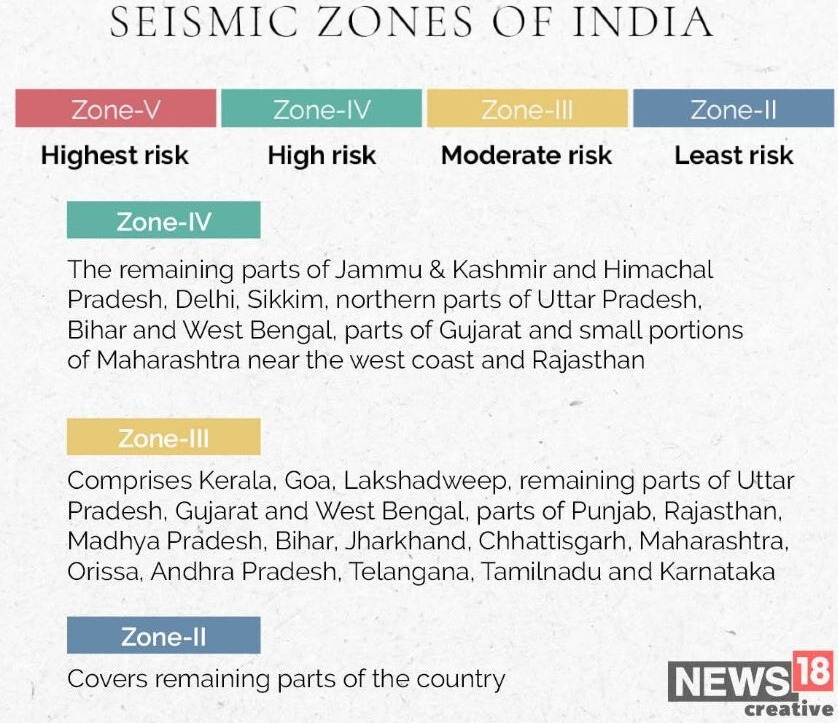 Entire northeastern India, parts of the UTs Jammu and Kashmir, Himachal Pradesh, Uttarakhand, Rann of Kutch, parts of North Bihar and the Andaman and Nicobar Islands are classified as Zone-V.