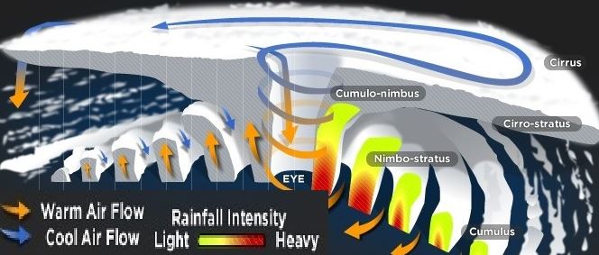 [Eye is created due to tangential force acting on wind that is following a curvy path]