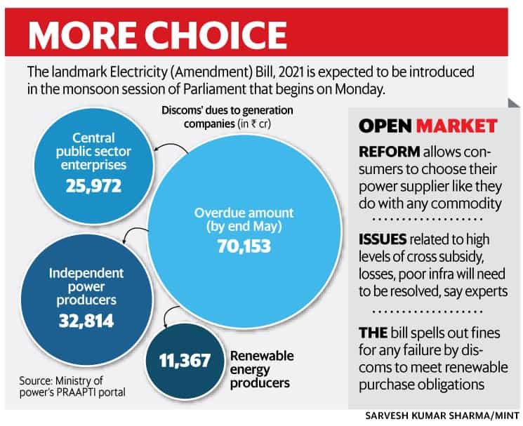 Context: The Union cabinet may shortly consider the landmark Electricity (Amendment) Bill, 2021, to reform the power distribution business and make it more competitive.