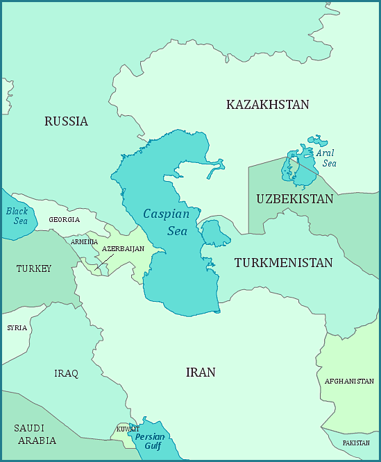 1st option is correct. The Caspian Sea is a landlocked body of water between Europe and Asia. Five countries — Russia, Kazakhstan, Turkmenistan, Iran and Azerbaijan — border the inland sea.