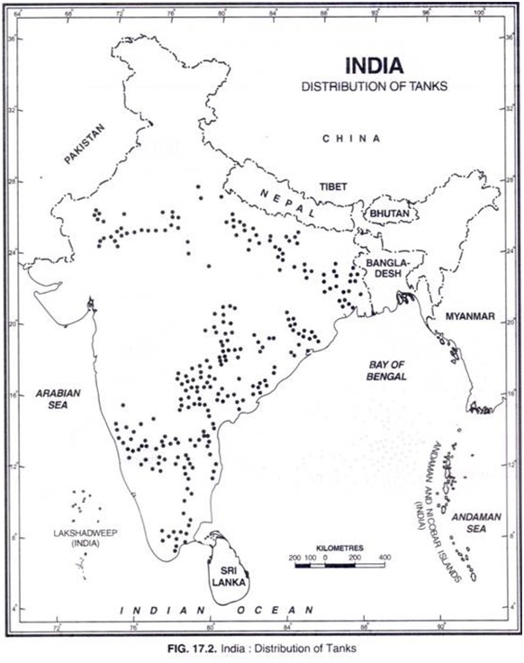 All of the above is correct. A tank consists of water storage which has been developed by constructing a small bund of earth or stones built across a stream. Tank irrigation is popular in the peninsular plateau area where Andhra Pradesh and Tamil Nadu are the leading states. The tank irrigation is practised mainly in peninsular India due to the following reasons- 1. The undulating relief and hard rock’s make it difficult to dig canals and wells. 2. There is little percolation of rain water due to hard rock structure and ground water is not available in large quantity. 3. Most of the rivers of this region are seasonal and dry up in summer season. Therefore, they cannot supply water to canals throughout the year. 4. There are several streams which become torrential during rainy season. The only way to make best use of this water is to impound it by constructing bunds and building tanks. Otherwise this water would go waste to the sea. 5. The scattered nature of population and agricultural fields also favors tank irrigation.