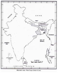 Fourth option is correct. The cultivation of jute in India is mainly confined to the eastern region of the country. The jute crop is grown in nearly 83 districts of seven states - West Bengal, Assam, Orissa, Bihar, Uttar Pradesh, Tripura and Meghalaya. Conditions for the cultivation of Jute- • Jute crop requires humid climate with temperature fluctuating between 24 degree Celsius and 38 degree Celsius. • Minimum rainfall required for jute cultivation is 1000 mm. • New grey alluvial soil of good depth receiving silt from annual floods is most suitable for jute growth. However, jute is grown widely in sandy looms and clay loams. • Jute is generally sown during March to May depending on the nature of land and atmospheric condition.