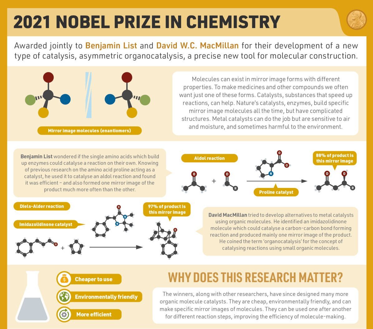 Nobel Prize in Chemistry 2021 Context: The 2021 Nobel Prize in Chemistry was awarded jointly to Benjamin List and David MacMillan “for the development of asymmetric organocatalysis”. Background
