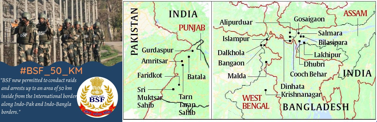 Context: Recently, Union Home Ministry has enhanced the powers of the Border Security Force (BSF) to “arrest, search and seize” within 50 km from the international boundary in Assam, West Bengal and Punjab.
