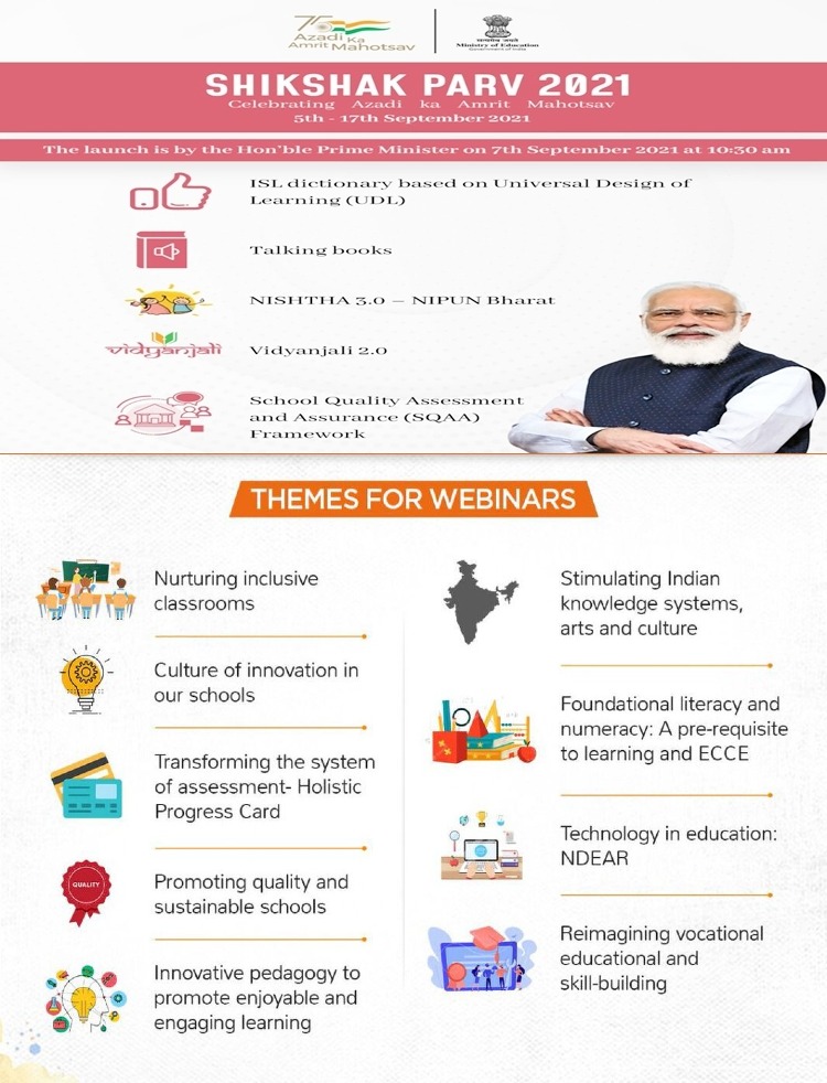 Context: Shiksha Parv is being celebrated by the Ministry of Education from 5th-17th September to recognize the contributions of teachers and to take New Education Policy (NEP) 2020 a step forward.