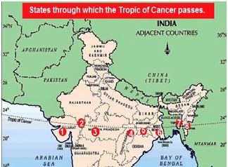 Multiple Choice Questions on Through which of the following state of India Tropic of cancer does not pass through ........ for UPSC Civil Services Examination (General Studies) Preparation
