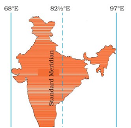 Third option is correct. The Indian Government has accepted the meridian of 82.5° east for the standard time which is 5 hours 30 minutes, ahead of Greenwich Mean Time.