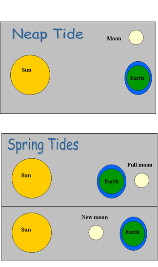 3. The tidal range is higher in the spring tide as compared to the neap tides.