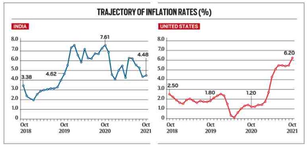 Context: Over the last few days, the retail inflation in the US has risen to 6.2%, the highest year-on-year jump in 3 decades. These rising prices have cornered a lot of attention, both globally and in India.