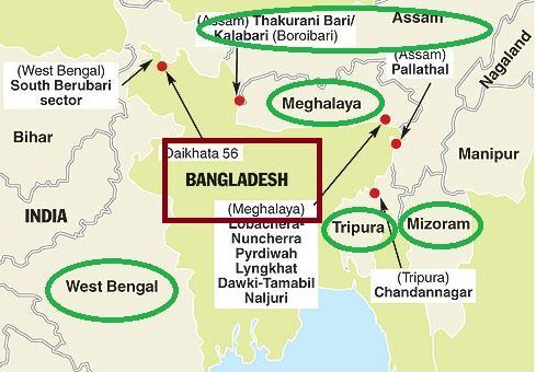 Which of the following States of India sharing border with Bangladesh?