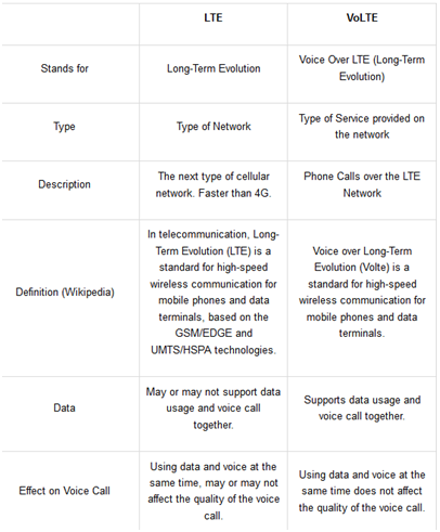 In context of cellular/mobile technology, what is the difference between 4G LTE and 4G VoLTE?