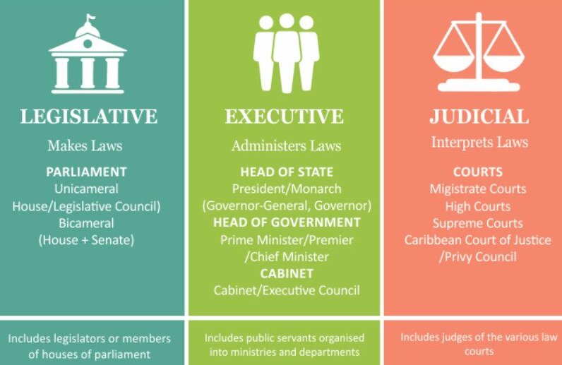 The theory of separation of powers signifies mainly three formulations of Governmental powers