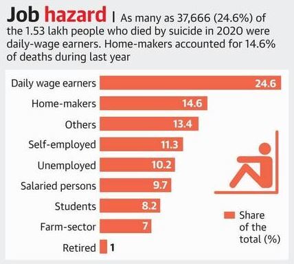 Context: Recently, the National Crime Records Bureau (NCRB) released the Accidental Deaths & Suicides in India Report 2020. Suicide Categories