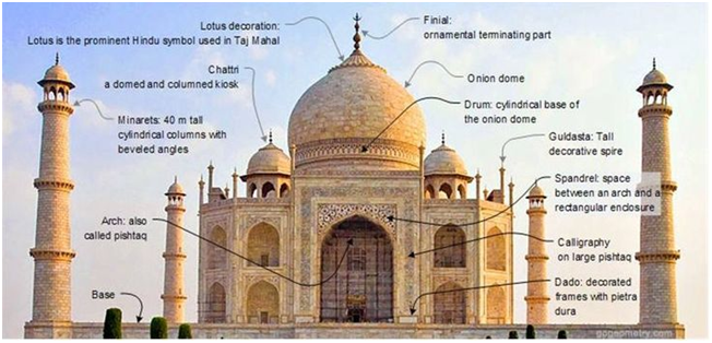 Third option is correct. The distinguishing features of Indo Islamic architecture are given below- Kiosks (chhatris), tall towers (minars), half-domed structure, jali work, calligraphy and pietra dura.