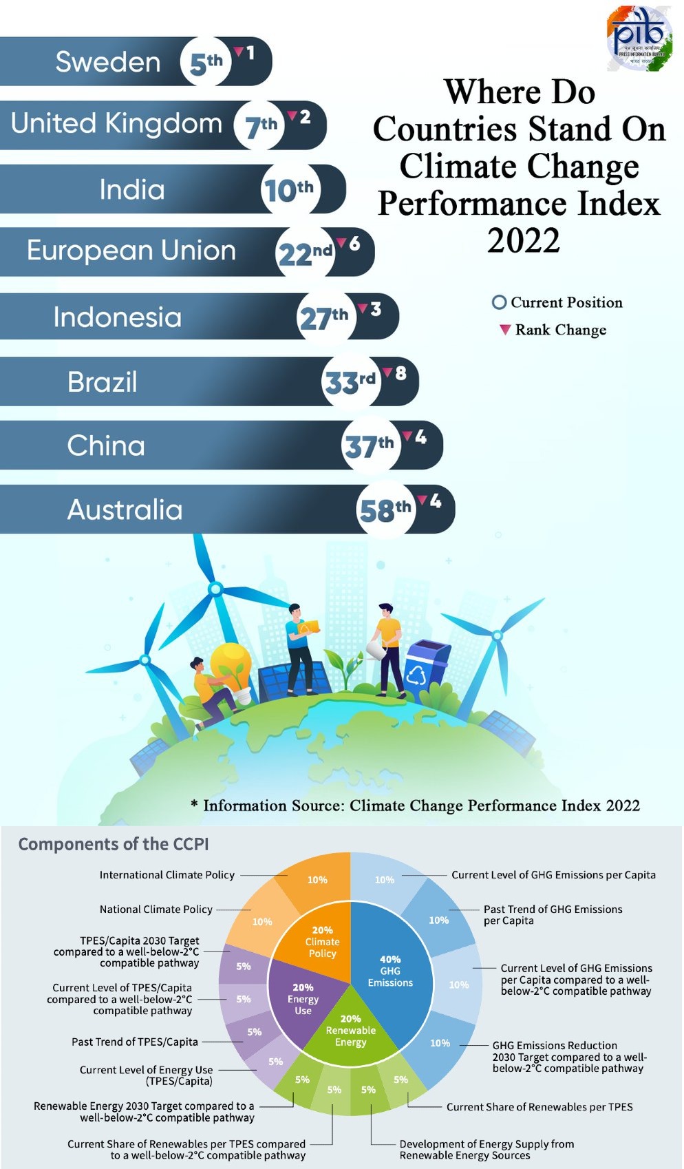 Context: Recently, released Climate Change Performance Index (CCPI) 2022 report has found that major emitting economies that announced their Net Zero emission release targets fared poorly in their climate change performance over 2021.