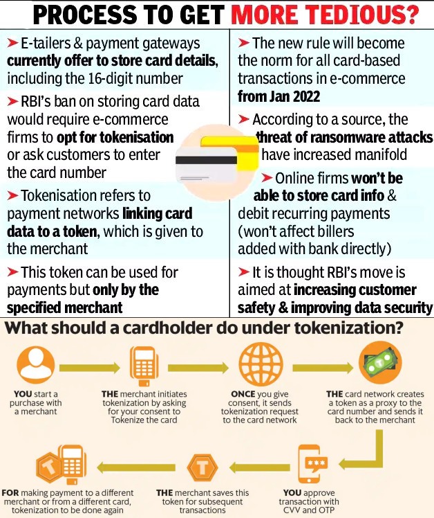 Context: Recently, Reserve Bank of India (RBI) has decided to restrict the implementation of tokenization of debit and credit cards for online transactions by a further six months following representations from stakeholders. Key decision