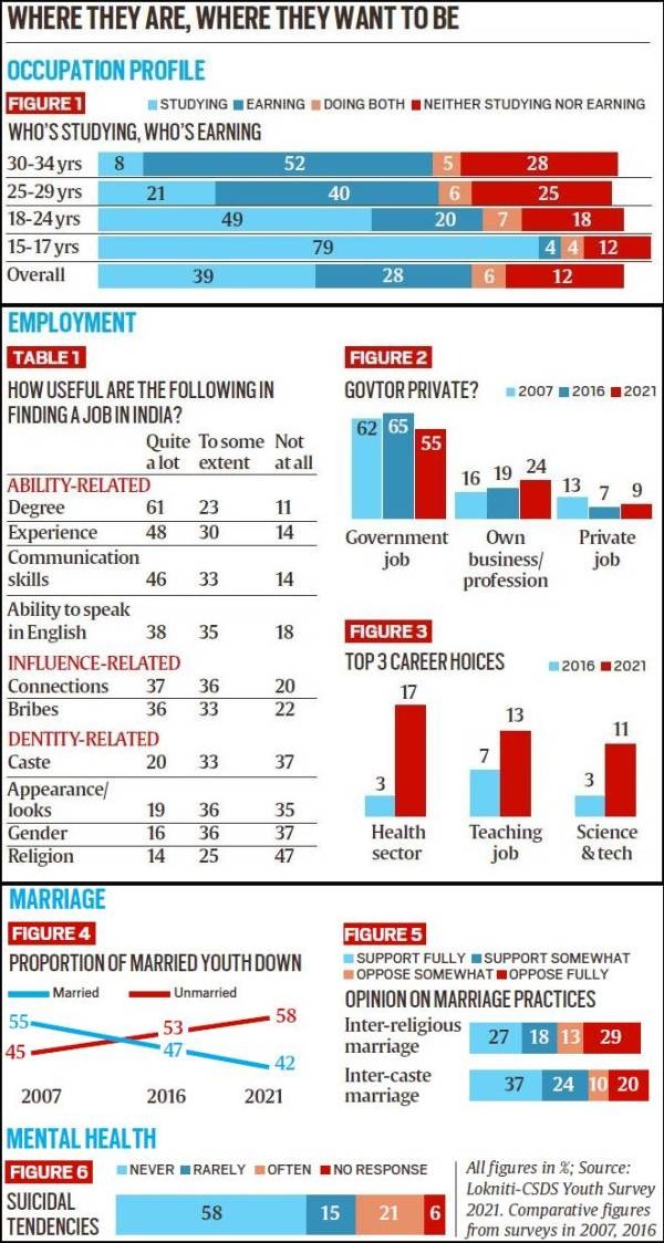 Context: Recently, Lokniti-CSDS in collaboration with Konrad Adenauer Stiftung released a report base on the survey titled ‘Indian Youth: Aspirations and Vision for the Future’.