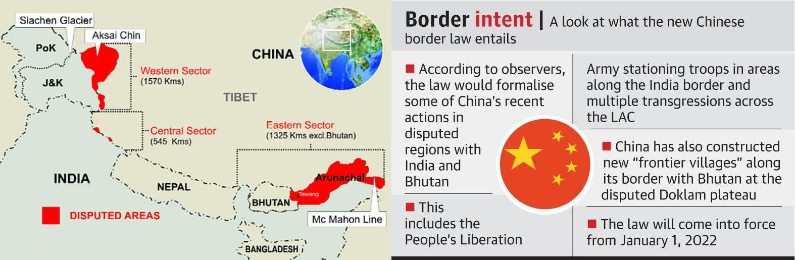 Context: China’s new law on land borders has come into effect from the new year. While some feel India should worry about its border areas, others note that China’s actions have been aggressive even without it.