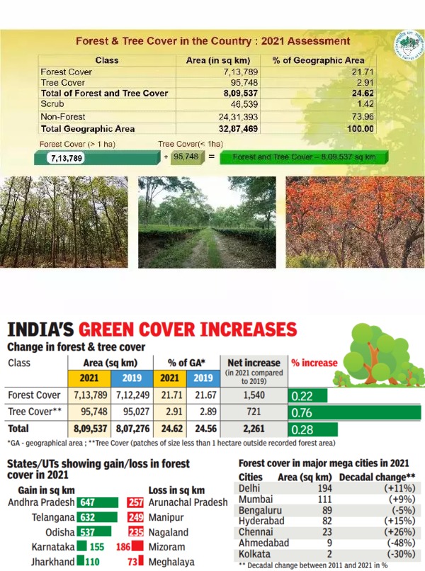 Context: Recently, Ministry of Environment, Forests and Climate Change (MoEFCC) has released the India State of Forest Report (ISFR) 2021.