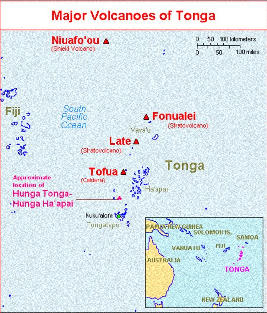 Context: Recently, an enormous underwater volcano called Hunga Tonga-Hunga Ha’apai erupted in the South Pacific, creating tsunami waves that hit the country of Tonga.