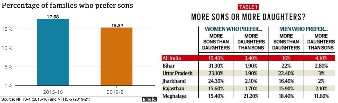 Context: The newly released National Family Health Survey (NFHS-5) reconfirms that a large number of Indians have a preference for sons.