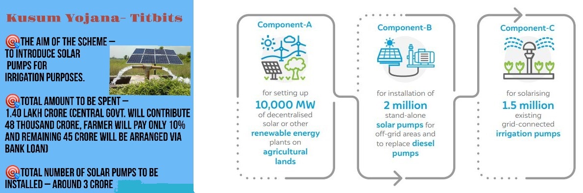 Context: Recently, Ministry of New and Renewable Energy (MNRE) has removed the clause of providing performance bank guarantee (PBG) for solar power generators under the PM-KUSUM scheme.